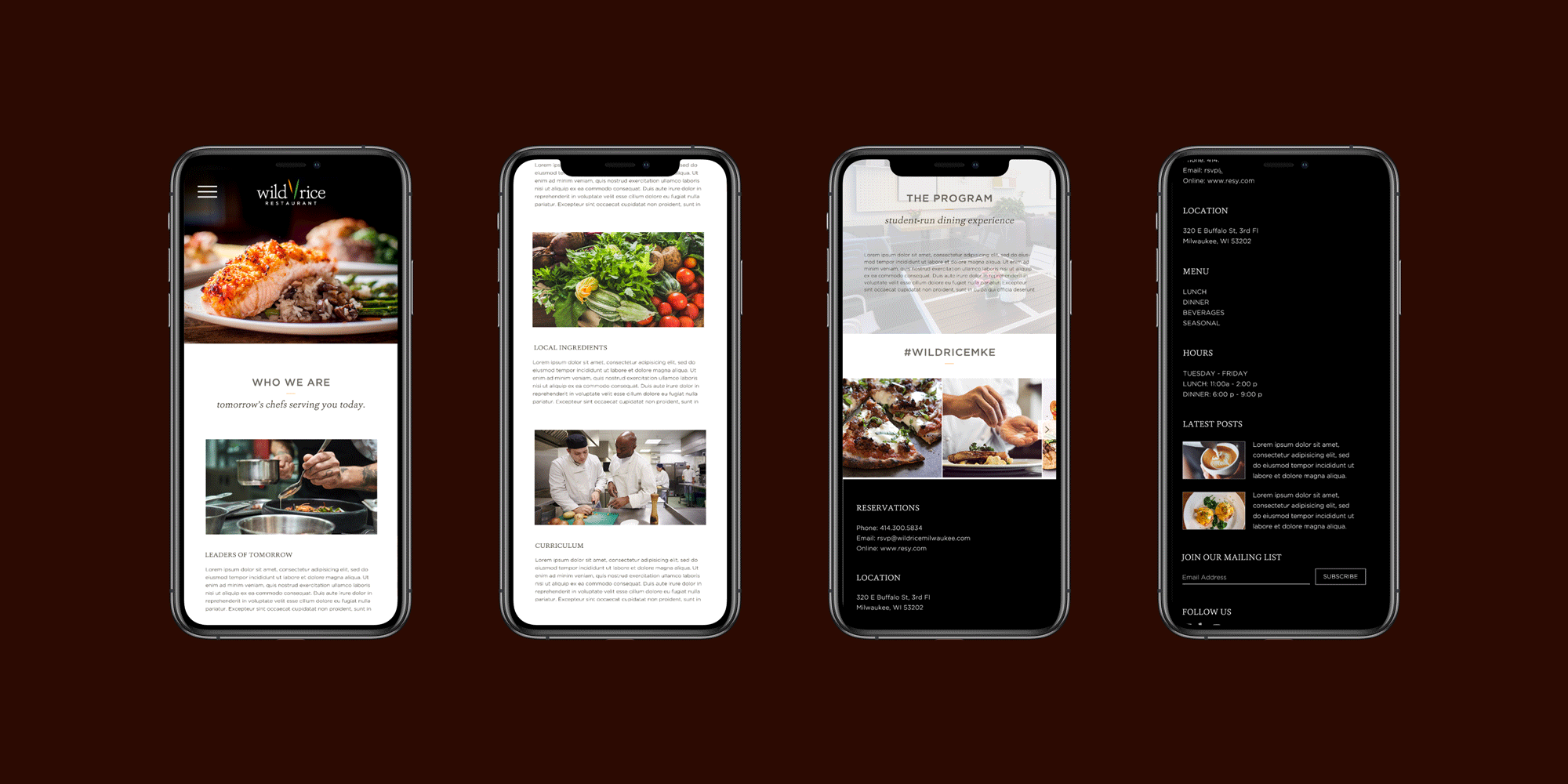 Client: Wild Rice is the Art Institute of Wisconsin’s first student-run restaurant offering a unique dining experience where students ran the restaurant—from food prep to front of house. The menu offered an array of seasonal items, with a focus on local ingredients like wild rice, an important grain in Wisconsin agriculture.